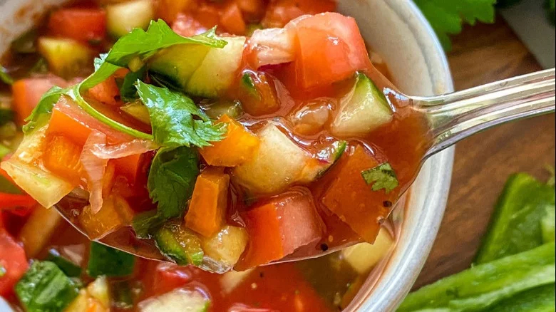 And here's another gazpacho recipe from TastingTable. This one is specifically named Mexican Gazpacho. It's much closer to the recipe I remember making as a 10-or-12-year old boy.
