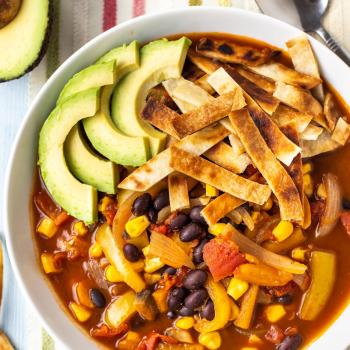 - After 30 minutes, add in the corn, black beans and pintos, and cook until heated through.